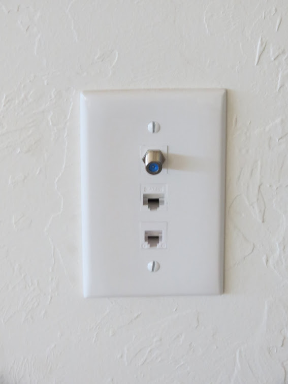 Each and every room in the house has at least one data connection panel, which will allow for hardwiring a phone, a cable box, and a computer to the internet.